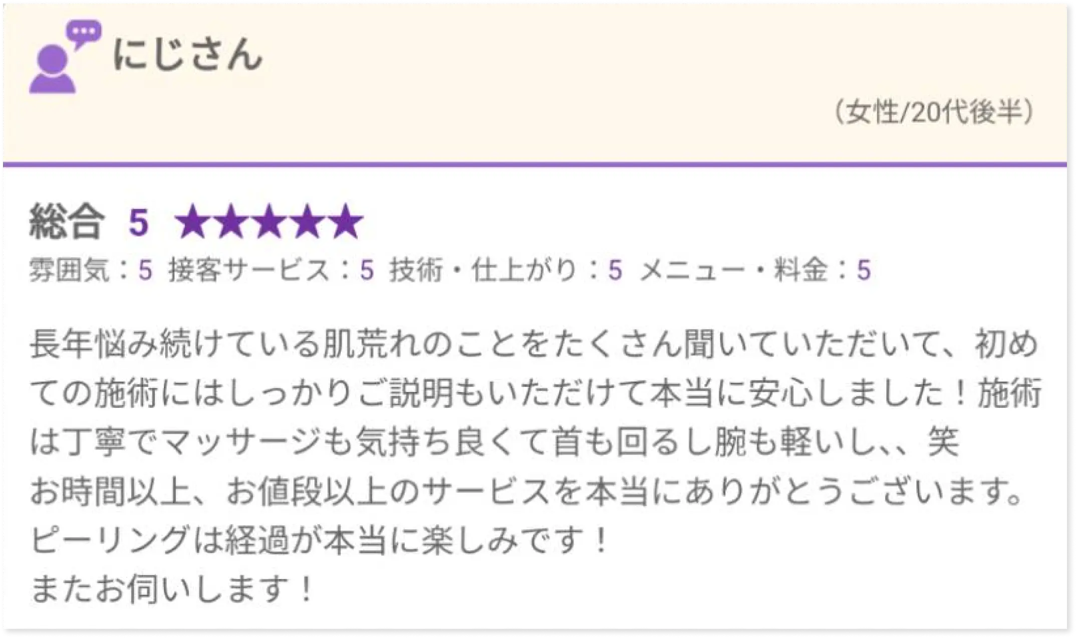 非常に刺激が少ない施術のため、敏感肌の方でもご利用いただけます。また当日お肌の状態をスタッフが確認した上で、施術いたしますのでご安心ください。